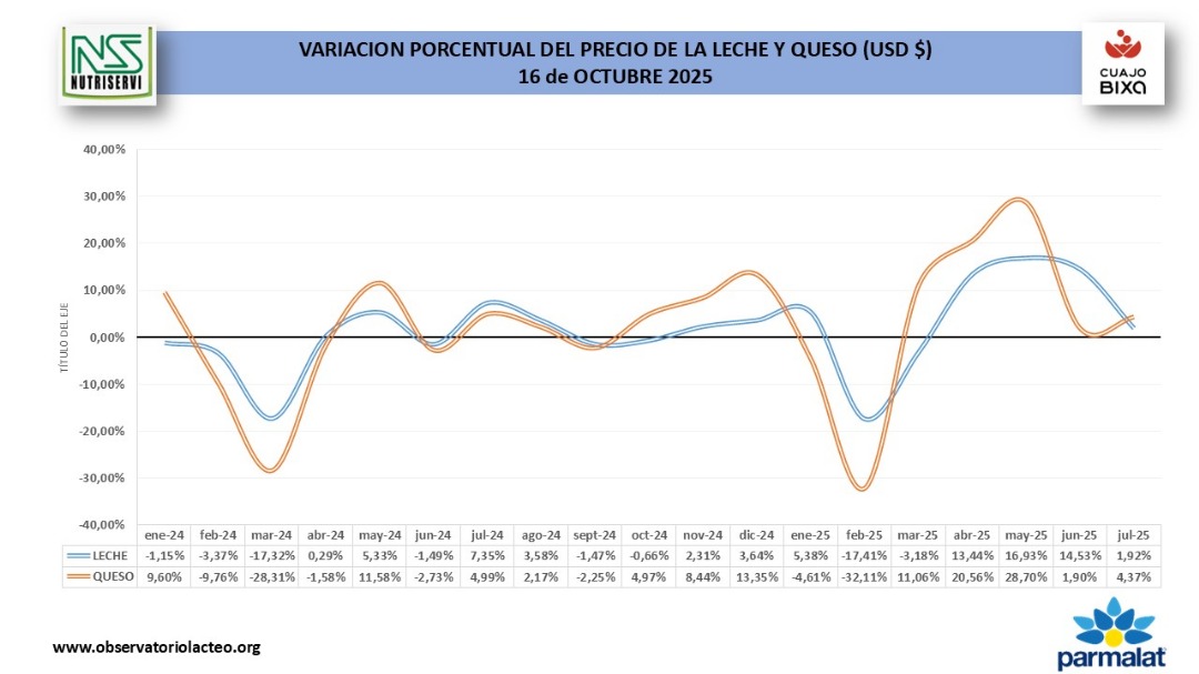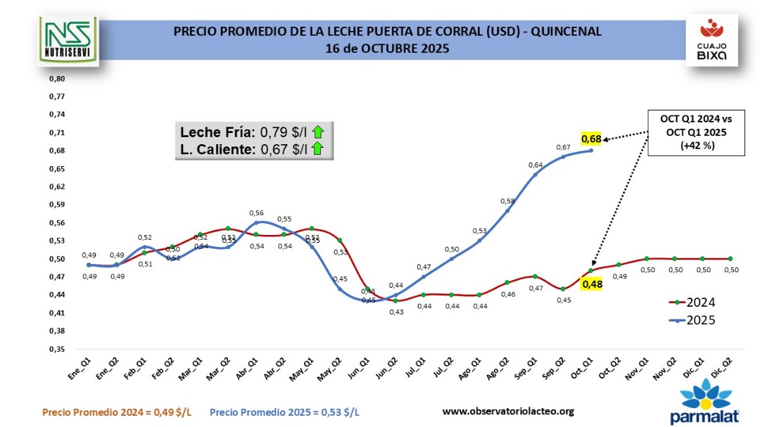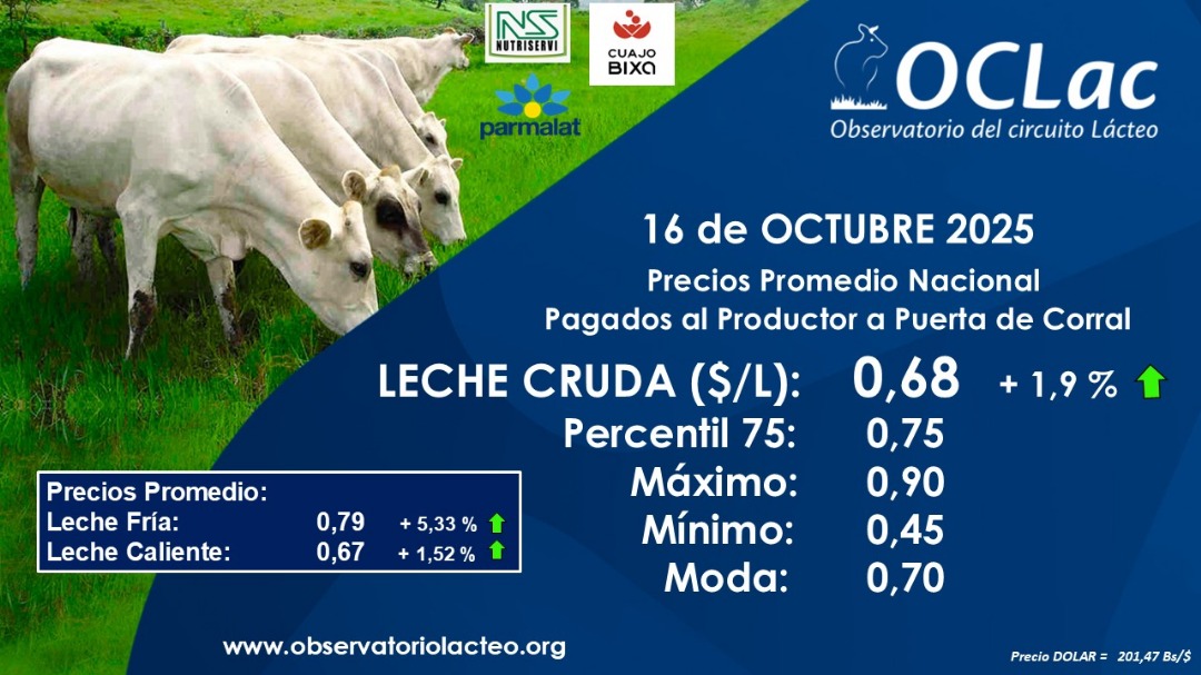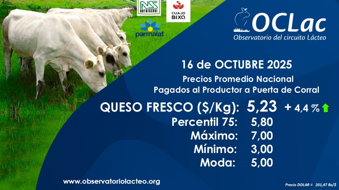 Precios de Leche y Queso a puerta de corral (16-10-2025)